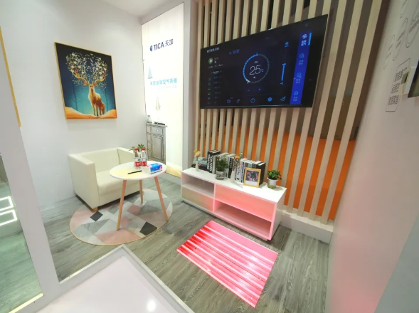 天加全效空氣系統(tǒng)圍繞恒溫、恒靜、恒濕、恒凈、恒氧五個(gè)不同維度,針對(duì)家庭不同功能區(qū)的需求,打造全方位居家生活系統(tǒng)解決方案。眾多參展嘉賓親自體驗(yàn)天加全效空氣系統(tǒng)在客廳、廚房、臥室、衛(wèi)生間、兒童房五個(gè)場(chǎng)所的樣板間,充分感受天加帶來(lái)的智能、舒適和健康。